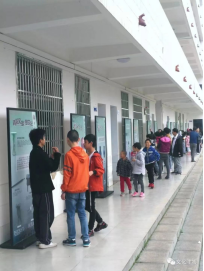 上午十点,工作人员将展牌按年代顺序放置好后,下课铃响了。学生们走出教室,很快便被精美的文物图片吸引了,有的聚精会神地看,有的和小伙伴讨论起来。